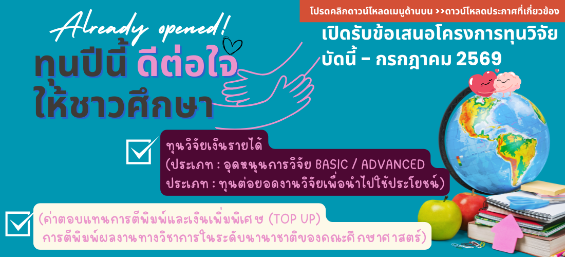 ประกาศ การจัดสรรทุนวิจัยและการบริหารทุนวิจัยจากงบประมาณเงินรายได้มหาวิทยาลัย คณะศึกษาศาสตร์ ปีงบ2569